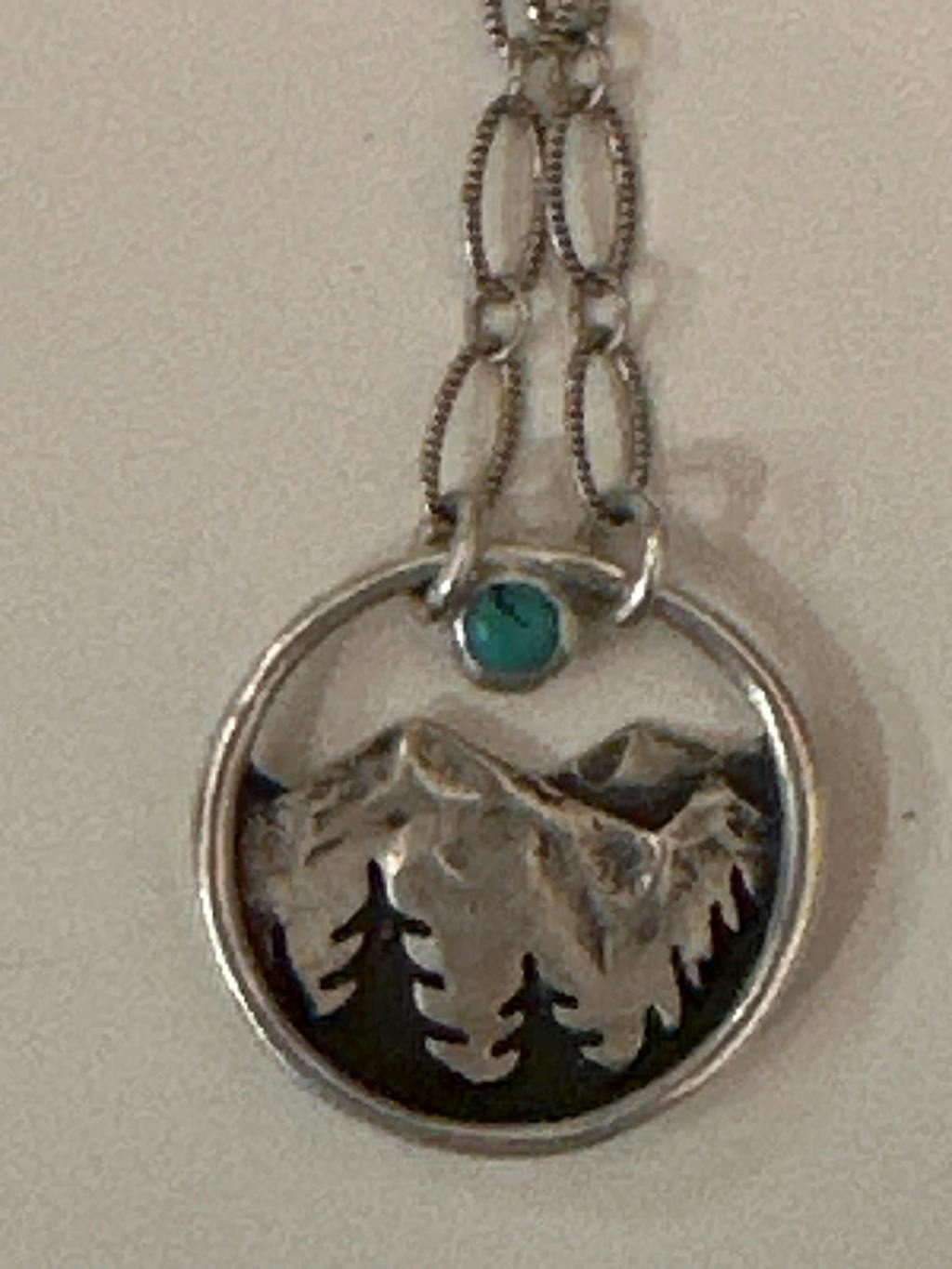 I love this necklace so much! Depicts the tricky Mountains I live in and the tiny turquoise pendant adds the color for the necklace to pop! Recommend!